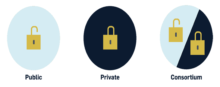 - Public: Bất kỳ ai cũng có quyền đọc và ghi dữ liệu trên Blockchain. Quá trình xác thực giao dịch trên Blockchain này đòi hỏi phải có rất nhiều nút tham gia. Vì vậy, muốn tấn công được vào hệ thống Blockchain này cần chi phí rất lớn và thực sự không khả thi. Ví dụ: Bitcoin, Ethereum,…