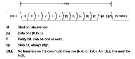 - UART truyền và nhận phải được đặt cho cùng tốc độ bit, độ dài ký tự, chẵn lẻ và bit dừng để hoạt động thích hợp.