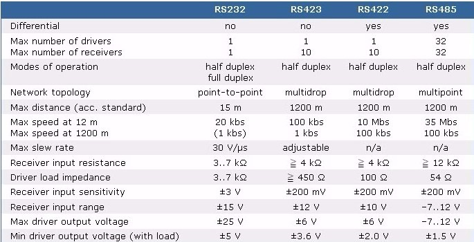 - Phạm vi giao diện vật lý tiêu chuẩn (TTL, RS232, RS422, RS485).