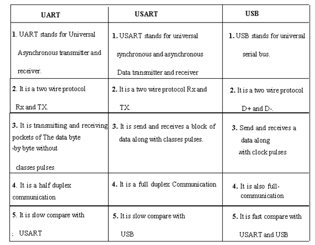 Hình ảnh bên dưới phân biệt giữa UART, USART và USB.