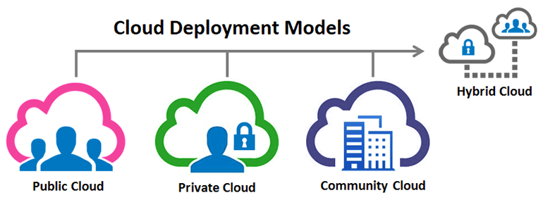 Hiện nay, có 4 mô hình triển khai điện toán đám mây chính đang được sử dụng phổ biến. Đó là: Public Cloud, Private Cloud, Hybrid Cloud và Community Cloud.