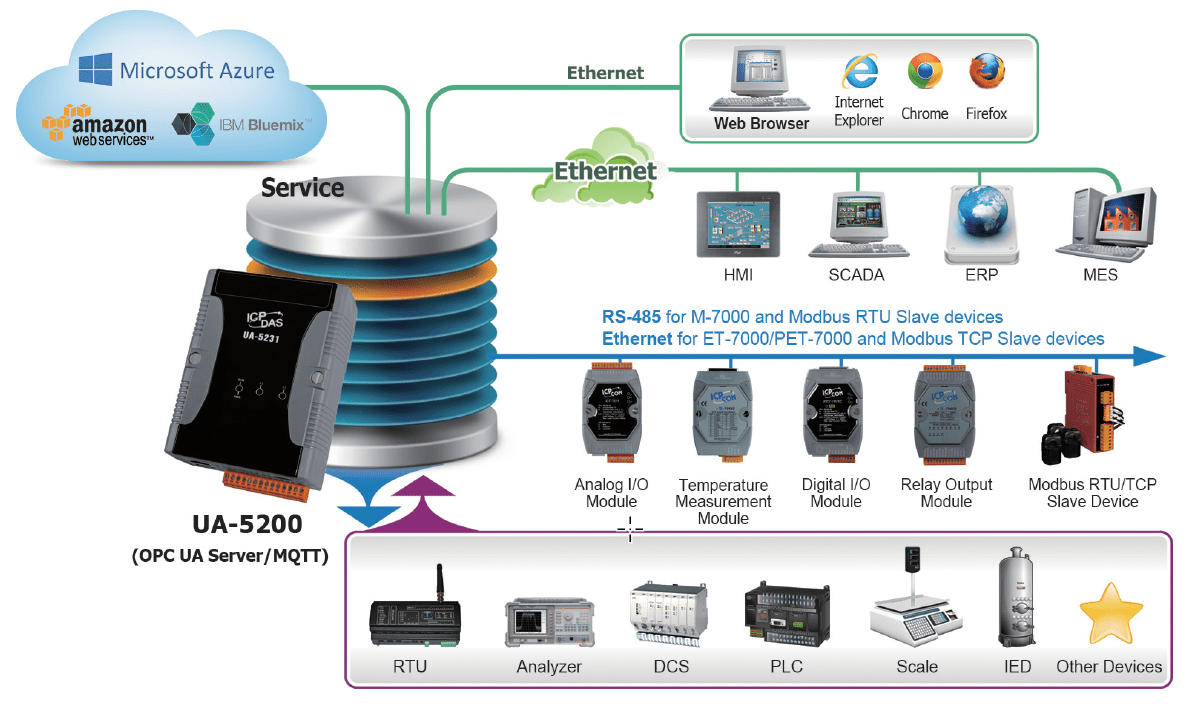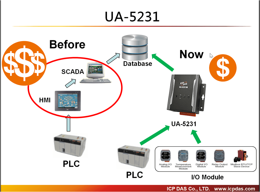 UA-5231 là bộ điều khiển thu thập dữ liệu đầu tiên được phát triển bởi ICP DAS, có thể được tích hợp với OPC UA Server, dịch vụ MQTT và các giao thức truyền dữ liệu khác. Dựa trên những lợi thế của kiến trúc CPU dựa trên RISC, kích thước nhỏ gọn và mức tiêu thụ điện năng thấp, UA-5231 có thể được áp dụng cho nhiều môi trường trường khác nhau. Áp dụng OPC UA cho phép tích hợp các sản phẩm I/ O của ICP với các thiết bị của bên thứ ba và sau đó thông tin dữ liệu có thể được nhập vào SCADA phụ trợ, đám mây hoặc hệ thống ghi dữ liệu hoặc ra quyết định khác, do đó đáp ứng độ tin cậy, khả năng tương tác và bảo mật nhu cầu của hệ thống tự động hóa công nghiệp trong khi đáp ứng các yêu cầu của internet thông minh.