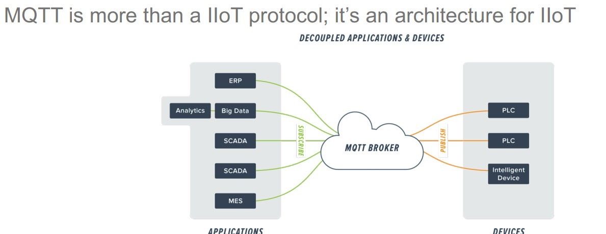 MQTT là một khối xây dựng quan trọng của giao tiếp giữa máy và máy. Lý do chính cho điều này là vì nó đơn giản để sử dụng và được thiết kế để sử dụng với các thiết bị hạn chế, băng thông thấp. MQTT cho phép thiết bị IIoT gửi dữ liệu cảm biến, trạng thái máy và cảnh báo, trong khi yêu cầu viết mã tối thiểu. Nó cũng cho phép thiết bị nhận lệnh điều khiển hành vi.