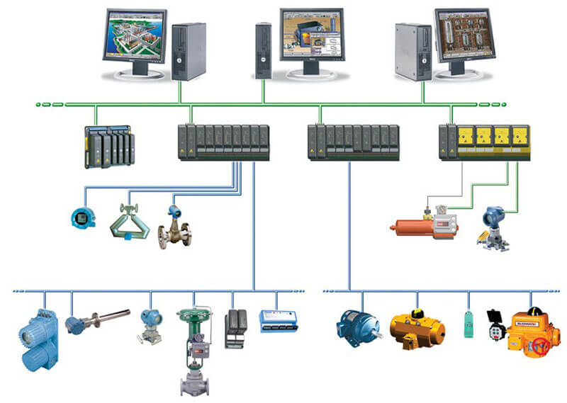 Một hệ thống điều khiển phân tán DCS bao gồm các thành phần chính sau:
