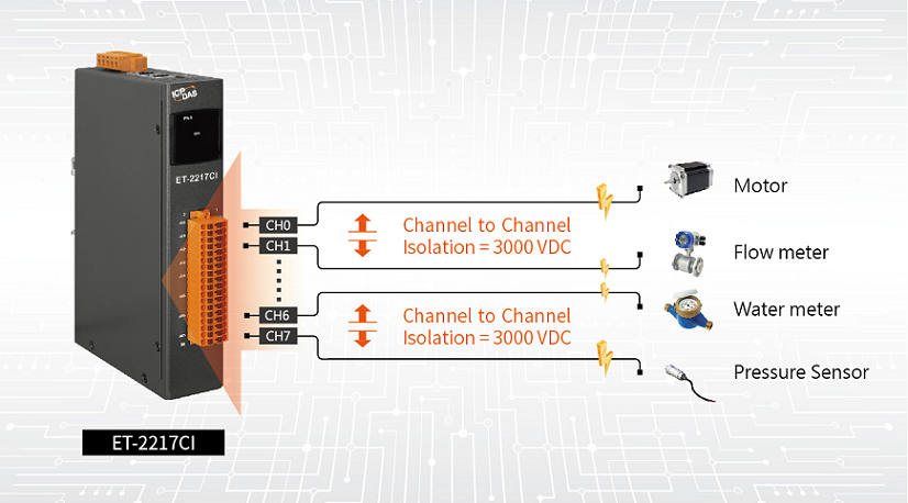 | ET-2217CI CR | Ethernet I/O Module with 2-port Ethernet Switch, 8-ch Analog Inputs with Channel-to-Channel Isolation (RoHS) |