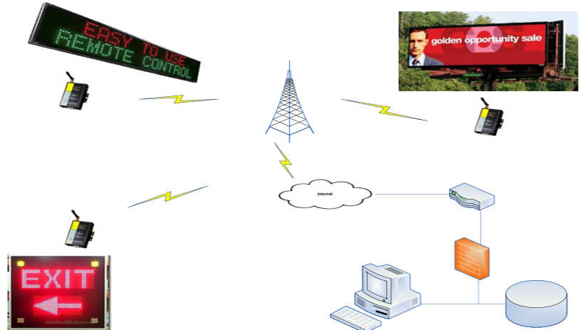 Theo cách truyền thống, hiển thị trên đèn LED được nhập bằng dữ liệu kết nối trực tiếp với máy tính. Vì vậy, không thể xây dựng hệ thống thông tin hiển thị trên màn hình LED với quy mô lớn. Cho nên phải giám sát hiển thị LED từ xa dựa trên mạng GPRS/ 3G. Từ đó, có được giao diện giám sát LED toàn cầu để đạt được mạng lưới hiển thị LED phạm vi lớn dù là màn hình đơn giản hay màn hình hiển thị đồ họa cỡ lớn.