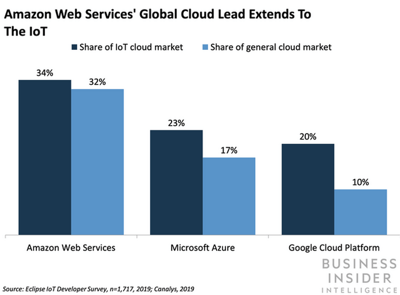 Theo nguồn của Business Insider Intelligence, Microsoft Azure là Platform cloud lớn thứ hai sau AWS và là một trong những Platform phát triển nhanh nhất. Bộ Azure IoT, giải pháp SaaS để xây dựng và quản lý các hệ sinh thái được kết nối,cho thấy mức tăng trưởng 150% và chỉ thêm hơn 100 tính năng trong năm 2018. Kể từ đó, Microsoft đã rót 5 tỷ USD vào việc tăng cường các dịch vụ IoT và dữ liệu lớn của mình. Các giải pháp Azure IoT rất linh hoạt và bao gồm mọi khía cạnh của thiết kế và phát triển IoT, từ kết nối các thiết bị đến cung cấp thông tin chi tiết cho những người ra quyết định. Khách hàng từ các ngành khác nhau, bao gồm ô tô, sản xuất và năng lượng, sử dụng Platform IoT này để thúc đẩy hiệu quả và trí thông minh cho hoạt động của họ.