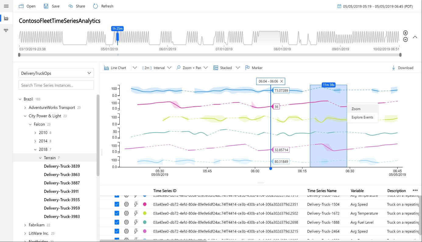 Times series Insights là một dịch vụ phân tích, hiển thị và lưu trữ dữ liệu IoT tất cả trong một. Nó giải quyết tất cả các yêu cầu để xử lý các sự kiện IoT.Trước hết, nó chuẩn bị dữ liệu và chia nó thành hai loại – hot và cold. Dữ liệu lạnh là dữ liệu lịch sử chủ yếu tham gia vào phân tích dự đoán, đào tạo mô hình Máy học hoặc các quy trình khoa học dữ liệu khác. Dữ liệu ấm được lưu trữ “gần hơn” vì nó thường được sử dụng để nhanh chóng phản hồi các sự kiện và bắt đầu hành động, chẳng hạn như kích hoạt một chức năng Azure nhất định trong thiết bị IoT. Thứ hai, dịch vụ này được mở để tích hợp với các dịch vụ phân tích nâng cao (ví dụ: Azure Machine Learning) và Power BI. Và cuối cùng, Times Series Insights cung cấp các hình ảnh trực quan linh hoạt và cho phép xây dựng các mô hình tùy chỉnh để tìm các mẫu và mối quan hệ độc đáo giữa các tập dữ liệu.