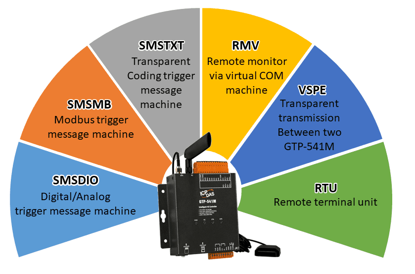 Ngoài ra, người dùng có thể chuyển đổi các chức năng khác nhau của GTP-541M như ModBusSMS, DIOSMS và RMV (Remote monitor via virtual COM machine) thông qua firmware thay thế thẻ SD để đáp ứng các yêu cầu ứng dụng khác nhau. Các tính năng mạnh mẽ của GTP-541M giúp giảm chi phí và thời gian phát triển, lý tưởng cho các ứng dụng IoT.