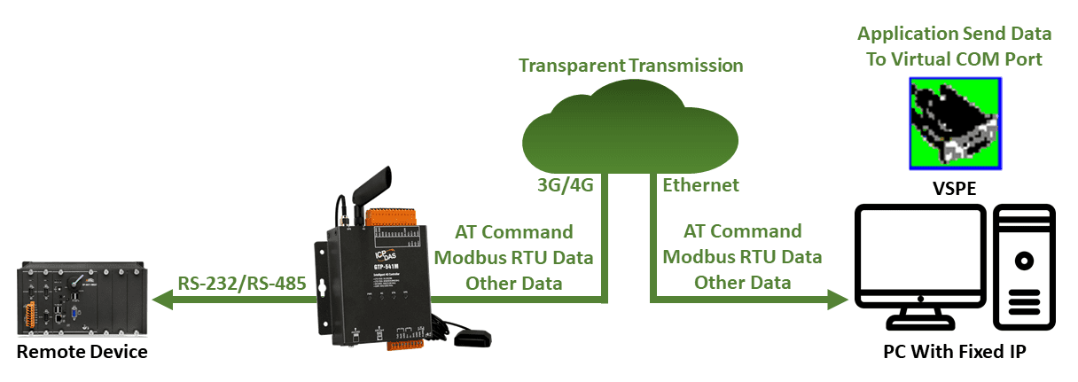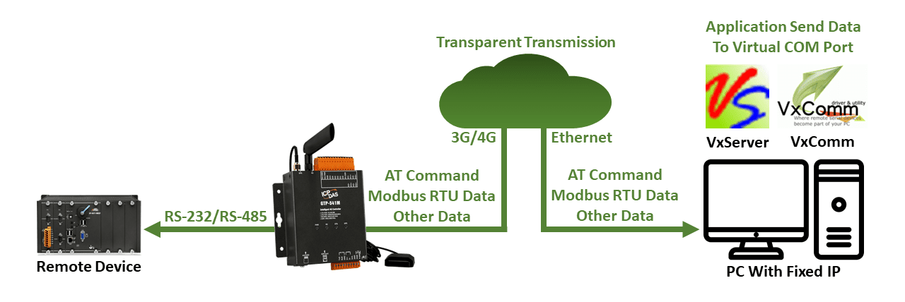 Thiết bị đầu cuối từ xa 4G truyền tín hiệu I/O đến nền tảng quản lý từ xa thông qua LTE/WCDMA/GPRS. ICP DAS cũng cung cấp hỗ trợ phần mềm liên quan để giúp khách hàng nhanh chóng thiết lập các chương trình giám sát. Các phần mềm này bao gồm VxServer và phần mềm COM ảo như VxComm.