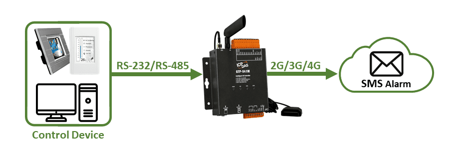 - Nội dung SMS và số điện thoại có thể được chỉ định động thông qua các lệnh Modbus RTU.
