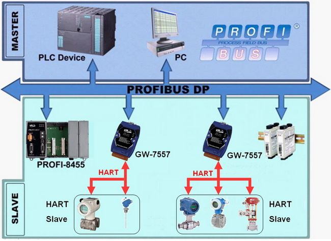 The GW-7557 Gateway is specially designed for the slave device of PROFIBUS DP protocol. It allows the PROFIBUS master to access the HART slave devices. These HART slave devices may be a transmitter, an actuator, a current output device and so forth. In addition, we also provide the utility software for users to configure the GW-7557. By using this module, users can put their HART slave devices into PROFIBUS network very easily.