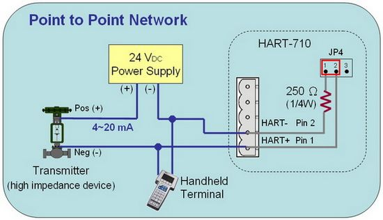 The analog and digital information can be communicated simultaneously in this mode. Both the 4-20 mA current and the digital signal are valid output values from HART instrument. The polling address of the HART instrument must set to be “0” and just one HART instrument can be put on HART bus. An optional “burst” communication mode where a single slave device can continuously broadcast a standard HART reply message can be used in peer-to-peer configuration and the higher update rates are possible.