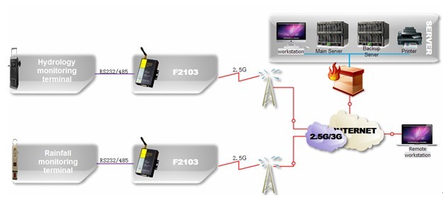 Modem F2103 được cài đặt trong trạm thu thập chịu trách nhiệm thu thập và giám sát bộ thu thập dữ liệu thủy văn hai chiều giữa các trung tâm.