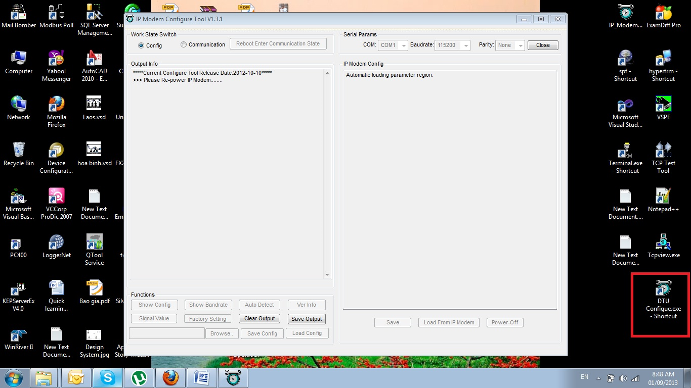 - Mở chương trình DTU config trên máy tính ra. Chương trình sẽ hiện như sau