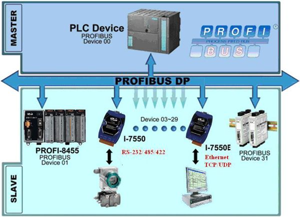 The I-7550E Converter is specially designed for the slave device of PROFIBUS DP protocol. It allows the PROFIBUS master to access any kinds of Ethernet devices supporting TCP/UDP protocol. The I-7550E can be set as TCP/UDP server and client, it's flexible for user to match their requirement. In addition, the I-7550E module built-in web server, the user can set the module by web browser. By using this module, users can put their Ethernet devices into PROFIBUS network very easily.