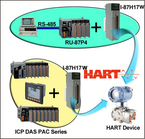 The I-87H17W is a HART analog input module. It can measures 4~20mA current and acts as a HART master, allowing communication with HART field devices. Its user-friendly design saves a lot of work when measuring current due to a built-in resistor. Now, users can measure current directly without any external resistor. The baud rate of I-87H17W is changeable and supports DCON protocol. Otherwise, ICP DAS also provides API library for users to develop their own program by VC,VB , C# or VB.Net environment.