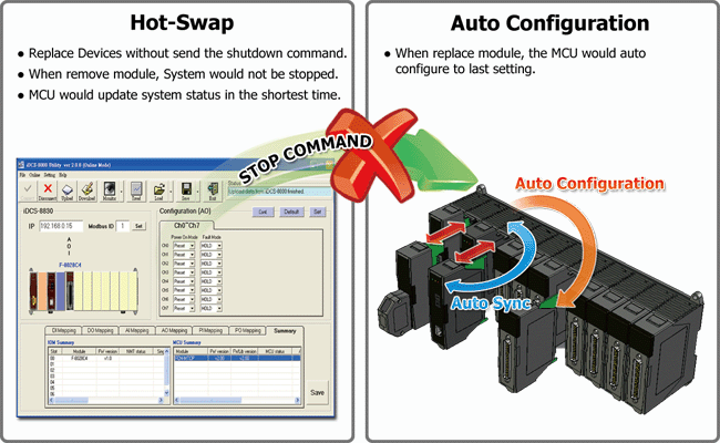 - The iDCS-8000 system also ensures that only modules of the right type can be inserted when on-line replace.