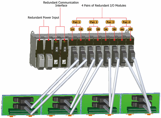 The I/O modules plugged in iDCS-8000 station can be configured into single or redundant operation. Users can easily upgrade I/O security in a same station by adding same module and configuring into redundant operation without any additional wiring.