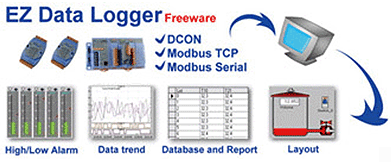 EZ Data Logger is a small data logger software. It can be applied to small remote I/O system. With its user-friendly interface, users can quickly and easily build a data logger software without programming.
