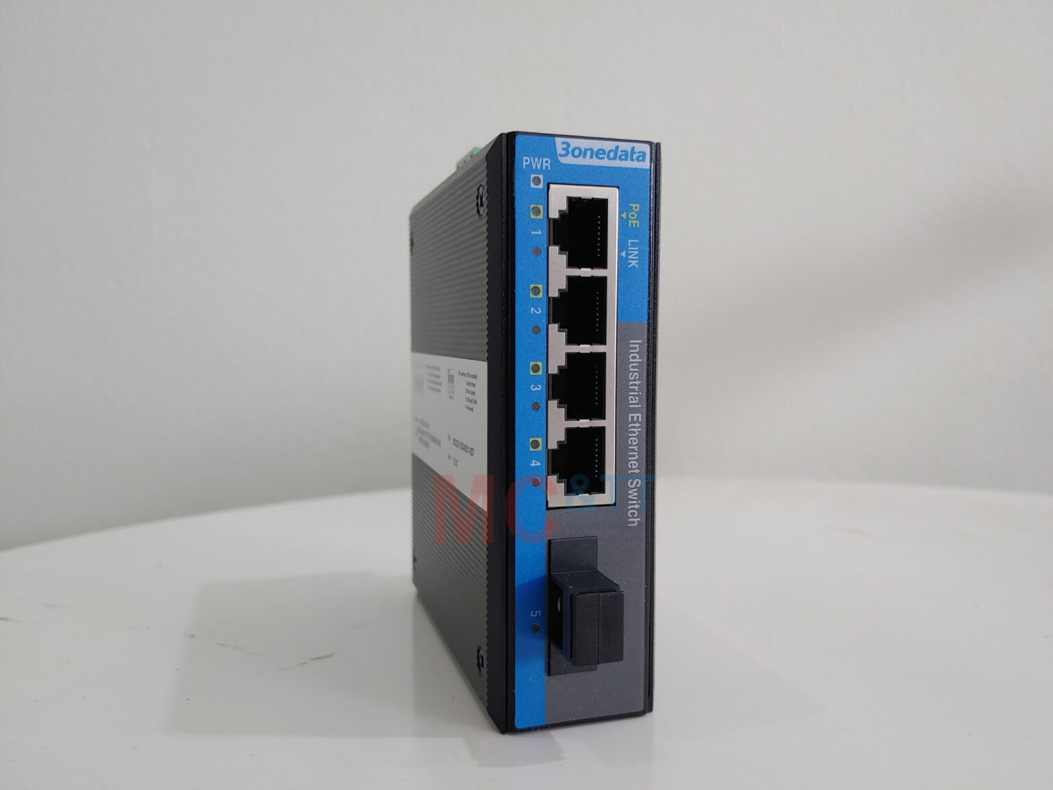 Switch công nghiệp 4 cổng PoE + 1 cổng quang (1 sợi quang, Single-mode, SC, 20KM) 3Onedata IES2105-4P1F-SS-SC-20KM-P48
