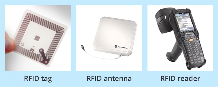 Hệ thống RFID bao gồm ba thành phần: thẻ RFID, ăng ten RFID và đầu đọc RFID.