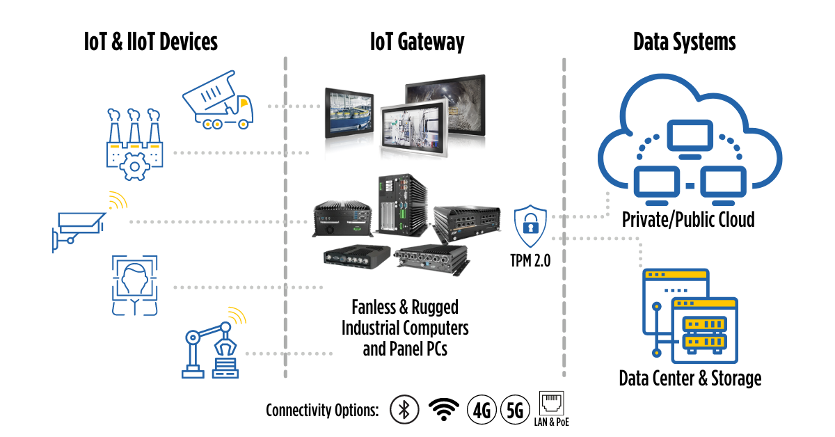 Gateway IoT cải thiện tính bảo mật của hệ sinh thái IoT của bạn bằng cách giảm các điểm kết nối nơi tin tặc có thể nhắm làm mục tiêu. IoT Gateways cũng được trang bị nhiều tùy chọn bảo mật như TPM 2.0 để đảm bảo mã hóa toàn bộ dữ liệu.