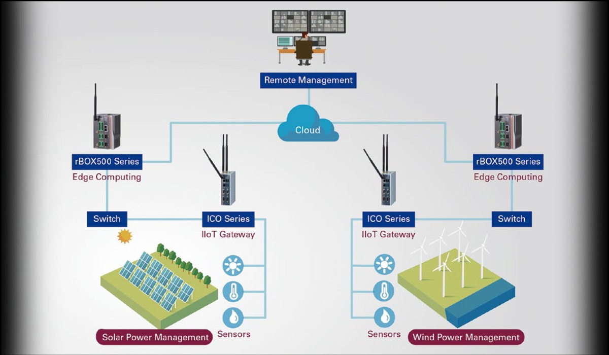 Năng lượng tái tạo ngày càng được quan tâm, với các ưu điểm nổi trội như: thân thiện với môi trường, sử dụng nguồn năng lượng tự nhiên,… giúp sản xuất một lượng điện lớn đáng kể và góp phần giảm dần các nguồn năng lượng khác tạo điện như thủy điện, nhiệt điện. Các nhà máy điện gió hay trạm năng lượng mặt trời thường được đặt ở những nơi đặc biệt, có điều kiện thời tiết khắc nghiệt hoặc vị trí địa lý không thuận lợi. Cổng kết nối IoT được sử dụng để điều khiển, giám sát các thiết bị trong hệ thống từ xa.