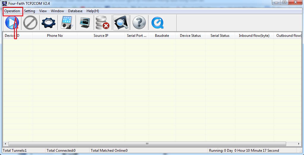 2.Tại giao diện chính của màn hình, chọn: Operation để thêm cổng ảo mới