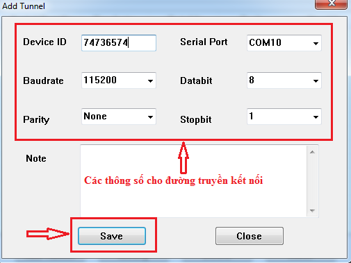 - Baudrate, Databit, Parity, Stopbit: Các thông số của Serial port.