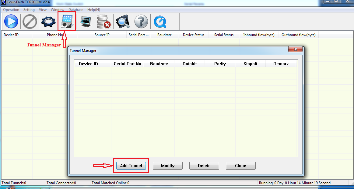 4.Chọn biểu tượng hoặc Window -> Tunnel Manager trên thanh công cụ để Add 1 đường truyền kết nối: