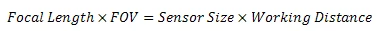 Thông thường, ống kính có tiêu cự cố định. Ngoài ra, thông thường khoảng cách làm việc rất linh hoạt, do đó, để tính toán đơn giản, hãy bắt đầu bằng tỷ lệ giữa khoảng cách làm việc và tiêu cự. Điều này sẽ cho phép bạn sử dụng tiêu cự ống kính cụ thể để xác định khoảng cách làm việc cần thiết. Nếu khoảng cách làm việc bị giới hạn thì bằng cách đảo ngược tỷ lệ này, chúng ta sẽ có được tỷ lệ giữa tiêu cự và khoảng cách làm việc. Điều này sẽ cho phép bạn sử dụng nhiều tùy chọn khoảng cách làm việc để có được phạm vi độ dài tiêu cự. Sau đó, khi ống kính được chọn, bạn có thể tính toán lại khoảng cách làm việc chính xác cần thiết.