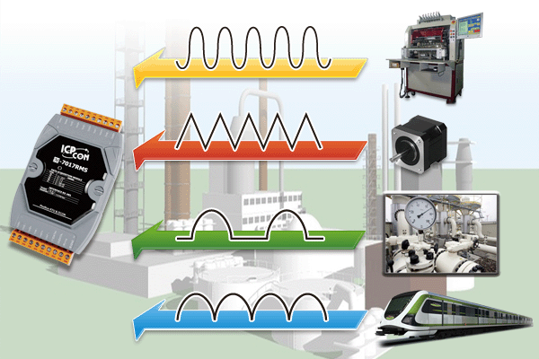 M-7017RMS is an 8-channel differential AC input module that is used to convert the AC input signals to their True RMS DC values. The RMS input range can be from +150 mVrms to +10 Vrms, and each channel can be configured individually. M-7017RMS is a complete, high-accuracy, RMS-to-DC converter that computes the True RMS DC value of any complex waveform. It also features 4 kV ESD protection, 2500 VDC intra-module isolation and ±35 VDC overvoltage protection.