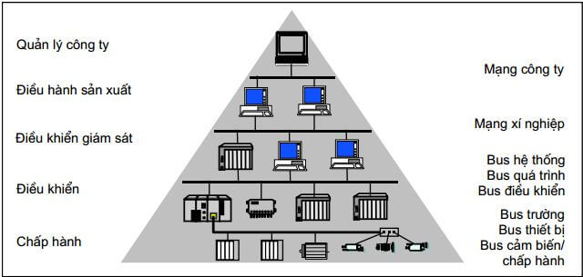 Để sắp xếp, phân loại và phân tích đặc trưng các hệ thống mạng truyền thông công nghiệp, ta dựa vào mô hình phân cấp quen thuộc cho các công ty, xí nghiệp sản xuất.