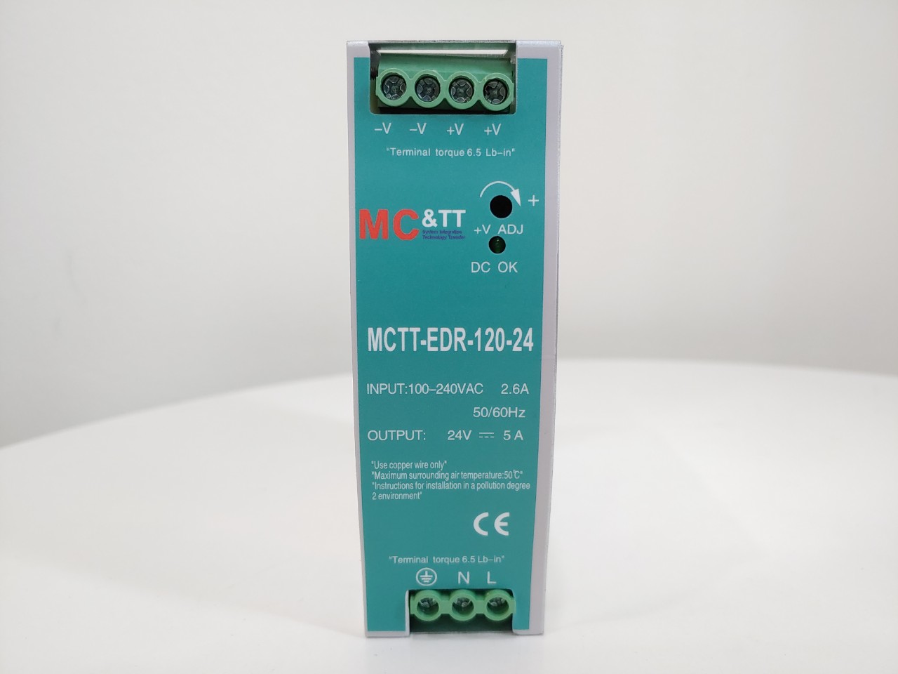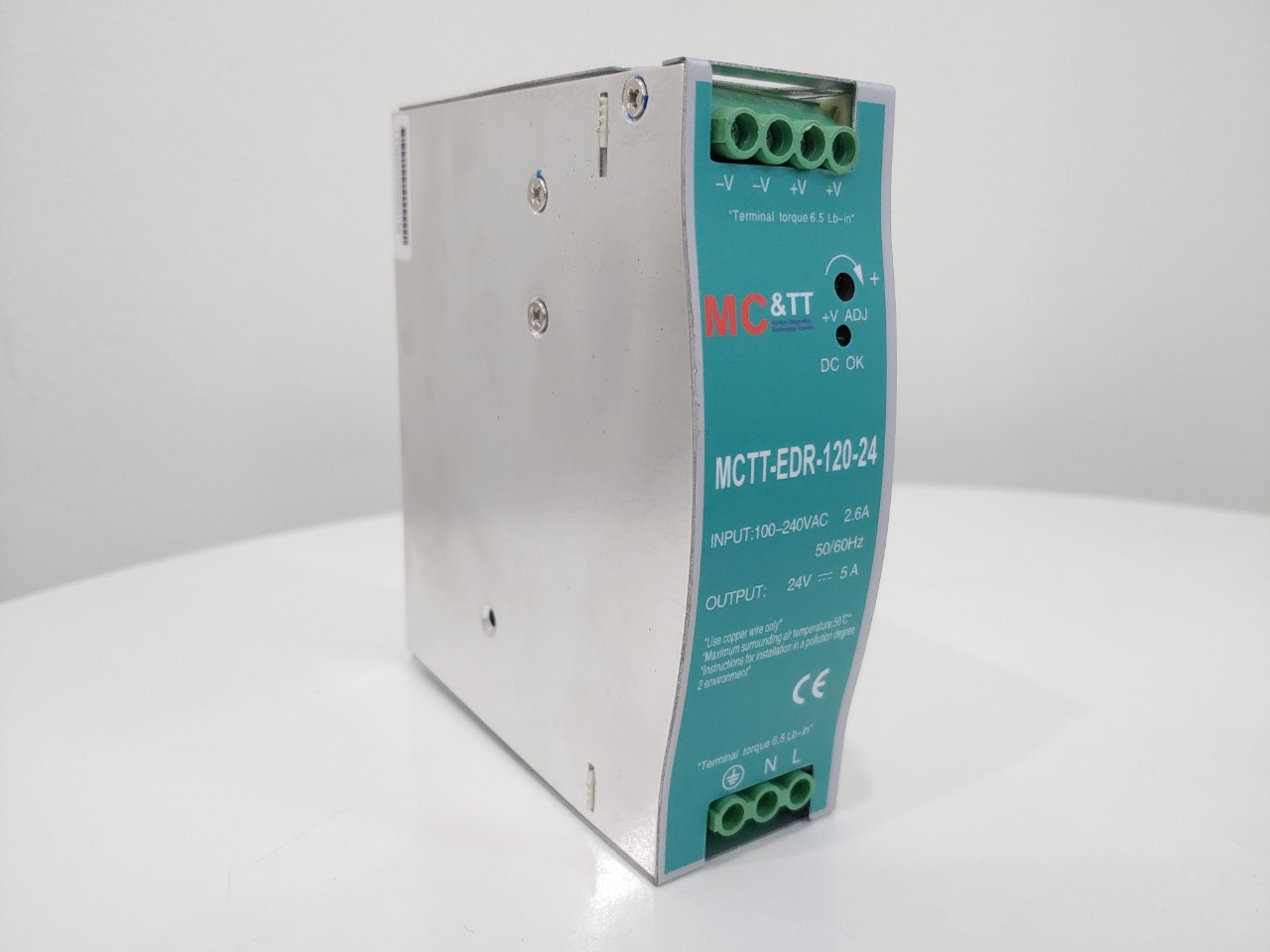 MCTT-EDR-120 là một trong những bộ nguồn Din rail 120W mỏng tiết kiệm, thích ứng để lắp đặt trên các thanh ray TS-35/7.5 hoặc TS-35/15. Thân vỏ được thiết kế với chiều rộng 40mm giúp tiết kiệm không gian bên trong tủ.