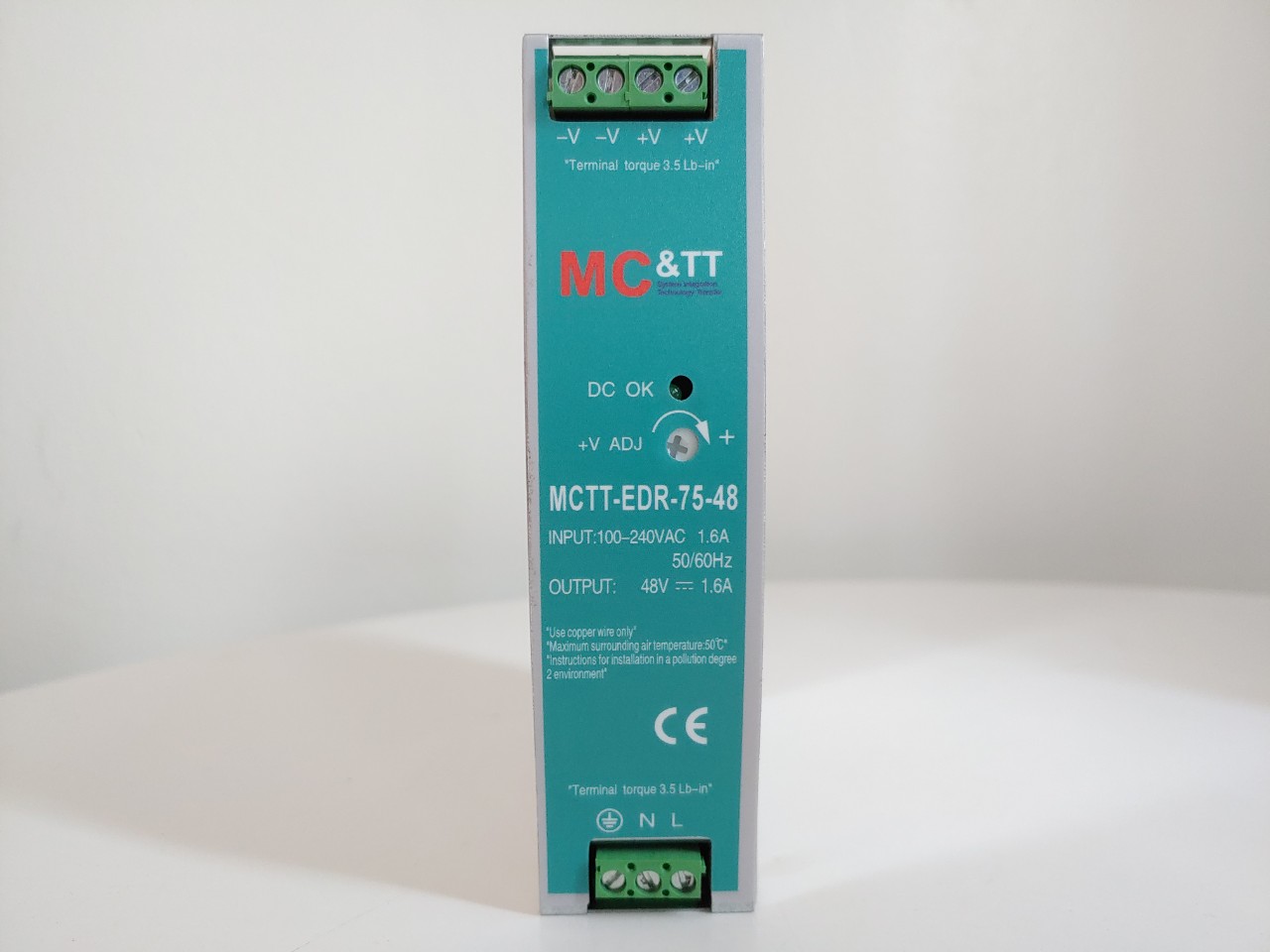 MCTT-EDR-75-48 là một trong những bộ nguồn Din rail 75W mỏng tiết kiệm, thích ứng để lắp đặt trên các thanh ray TS-35/7.5 hoặc TS-35/15. Thân vỏ được thiết kế với chiều rộng 32mm giúp tiết kiệm không gian bên trong tủ.