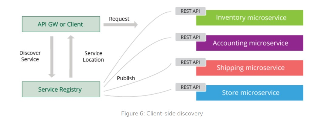 - Các microservice có thể tận dụng các giải pháp deployment như Kubernetes cho service-side discovery.