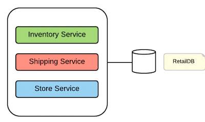 - Trong một số trường hợp kinh doanh, bạn có thể phải cập nhật một số cơ sở dữ liệu cho một giao dịch. Trong trường hợp như vậy, cơ sở dữ liệu của các vi dịch vụ sẽ được cập nhật thông qua dịch vụ API chỉ (không cho phép truy cập cơ sở dữ liệu trực tiếp)
