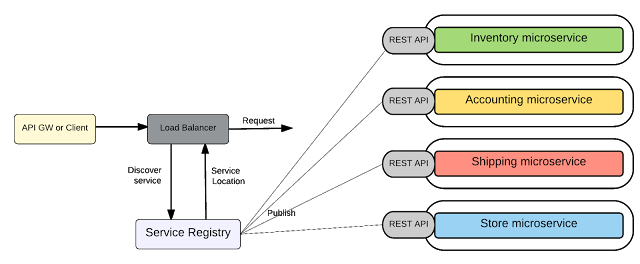 Ở đây khách hàng/API-GW đã thực hiện các dịch vụ khám phá logic bằng gọi các thành phần dịch vụ-đăng ký.