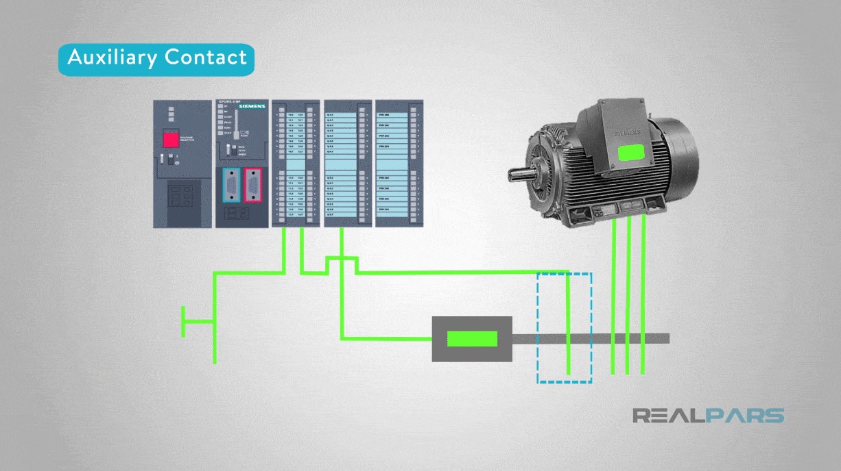Một liên hệ phụ trợ là một phần của rơle. Chúng cho chúng tôi biết khi bất cứ điều gì đang điều khiển rơle đã bật hoặc tắt.