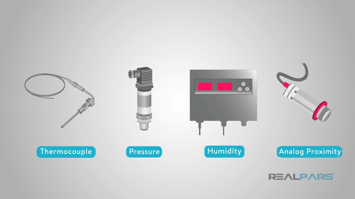 Có một vài loại tín hiệu chung được tạo ra bởi các thiết bị này. Đối với cảm biến nhiệt độ, các thiết bị tự tạo ra tín hiệu dải millivolt trong trường hợp cặp nhiệt điện hoặc điện trở thay đổi trong trường hợp Đầu dò nhiệt độ điện trở (RTD).
