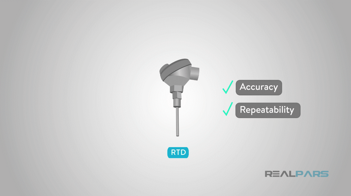 Do độ chính xác và độ lặp lại cao hơn, RTD thường là một yếu tố cảm biến tốt hơn khi chúng ta có thể sử dụng chúng.
