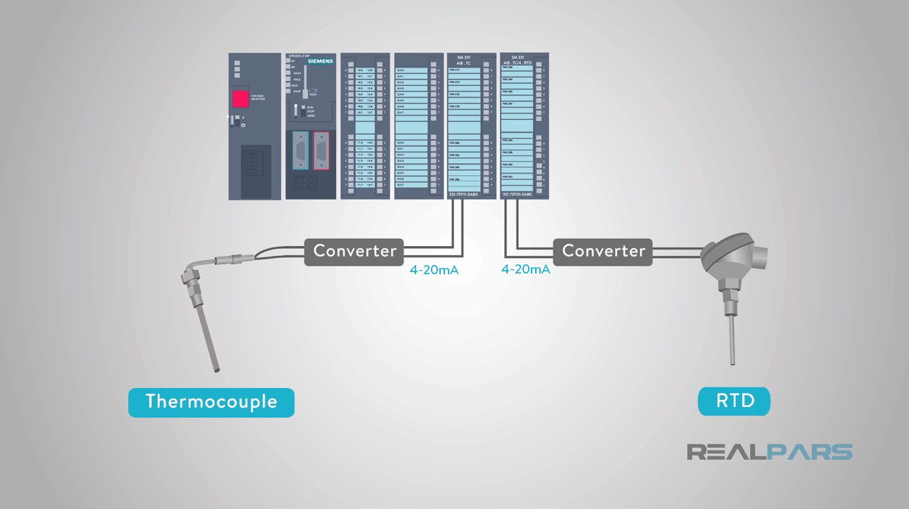 Phần còn lại của các loại tín hiệu được chuyển đổi cục bộ thành một dạng tín hiệu thường được hiểu hơn, là điện áp hoặc dòng điện trước khi được kết nối với hệ thống điều khiển. Nếu các tín hiệu nhiệt độ phải đi rất xa đến hệ thống điều khiển, chúng ta cũng thường chuyển đổi chúng như thế này.
