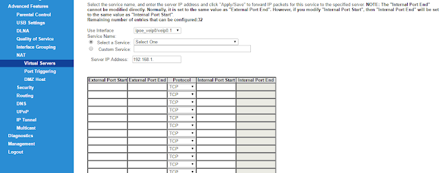 Các bạn vào mục Advanced Features -> Nat ->Virtual Servers nó sẽ hiện ra giao diện như sau