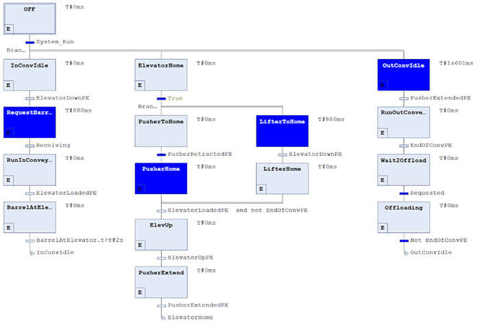 Nếu các bạn đã từng làm việc với các sơ đồ thì ngôn ngữ lập trình PLC SFC sẽ khiển bạn cảm thấy rất quen thuộc. SFC là từ viết tắt của cụm từ tiếng anh “Sequential Function Charts” tạm dịch là “Biểu đồ chức năng tuần tự”, bạn sẽ sử dụng các bước và quá trình chuyển đổi để đạt được kết quả cuối cùng của mình.