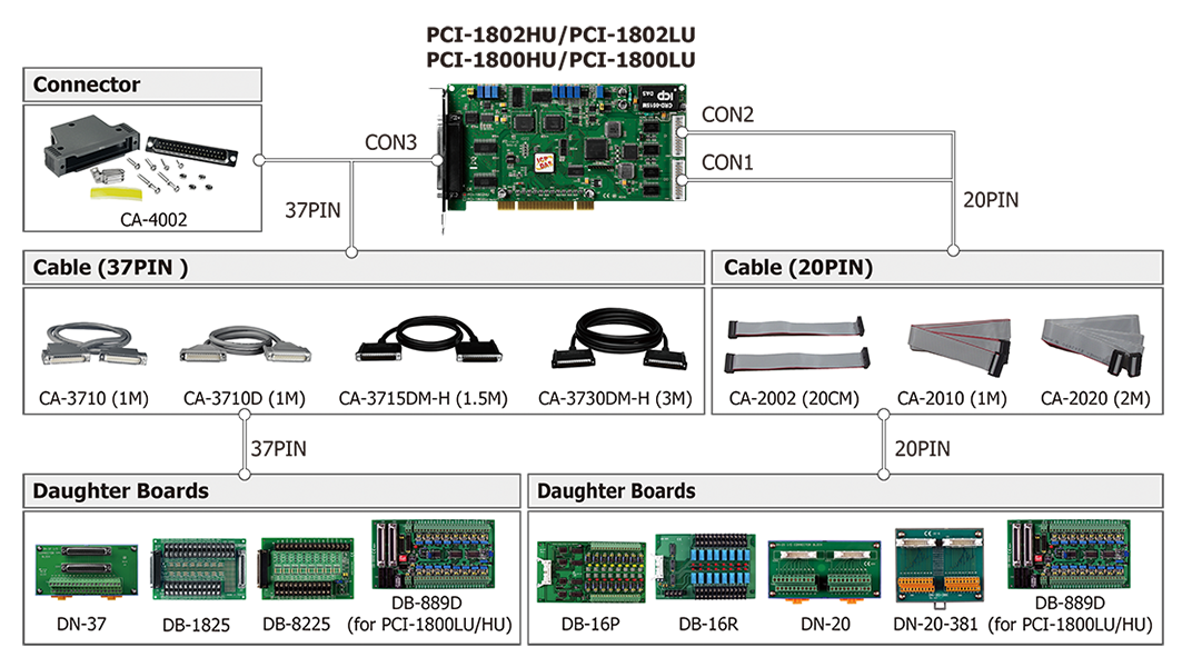 | PCI-1802HU/S CR | Universal PCI, 44k S/s, 32-ch, 12-bit AI Multifunction Board (RoHS) Includes one CA-3710 D-Sub cable |