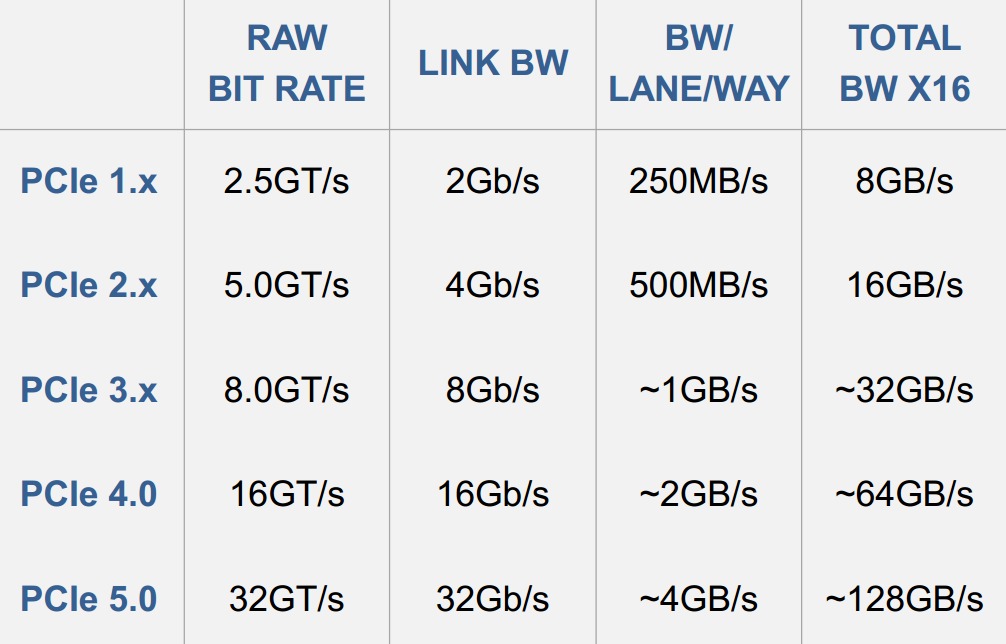 Với PCIe 4.0, tốc độ tăng lên 1,97GB/s và 16GT/s, gấp đôi 985MB/s và 8GT/s của PCIe 3.0. Cứ như vậy, mỗi thế hệ mới tăng gấp đôi (hoặc gần gấp đôi) băng thông của thế hệ tiền nhiệm.