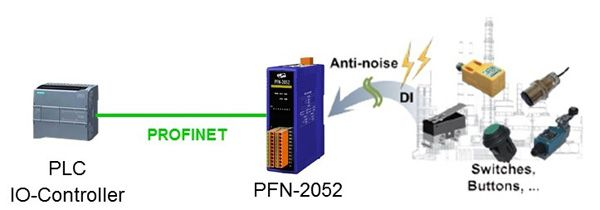 The PFN-2052 is specially designed for PROFINET IO device. It has 8-channel isolated digital inputs and, and is suited in various industrial applications. You can access and configure it by using the GSDML file in any PROFINET Engineering tool