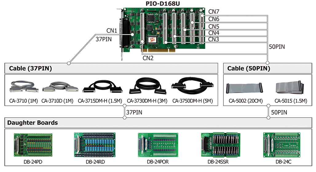 | Connector | Female DB37 x 1 50-pin box header x 6 |