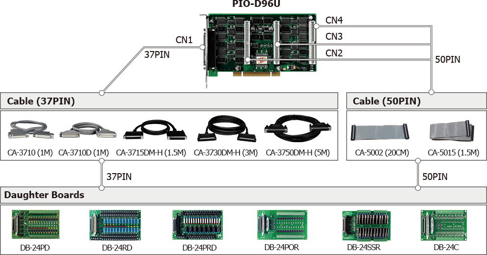 | Connector | Female DB37 x 1 50-pin box header x 3 |